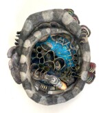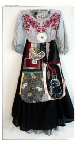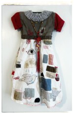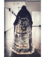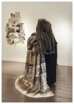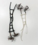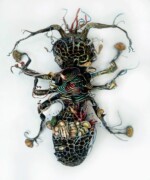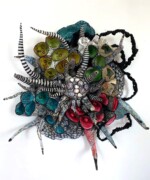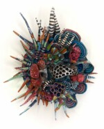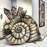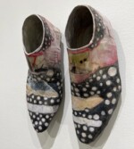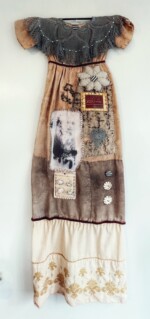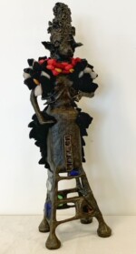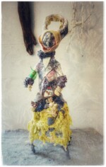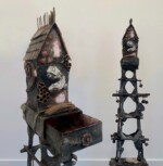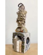 Downstream Elegy, paper and found objects, acrylic paint and medium on wire armature, from Layers and Crucibles, 2021
