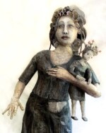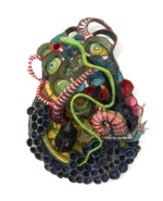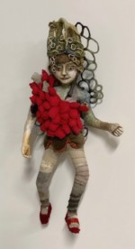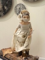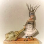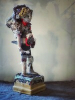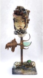 American Avatar, papier mache sculpture, found objects, acrylic paint and medium, wire armature, wood, from Tales from the Brambly Thicket, 2021